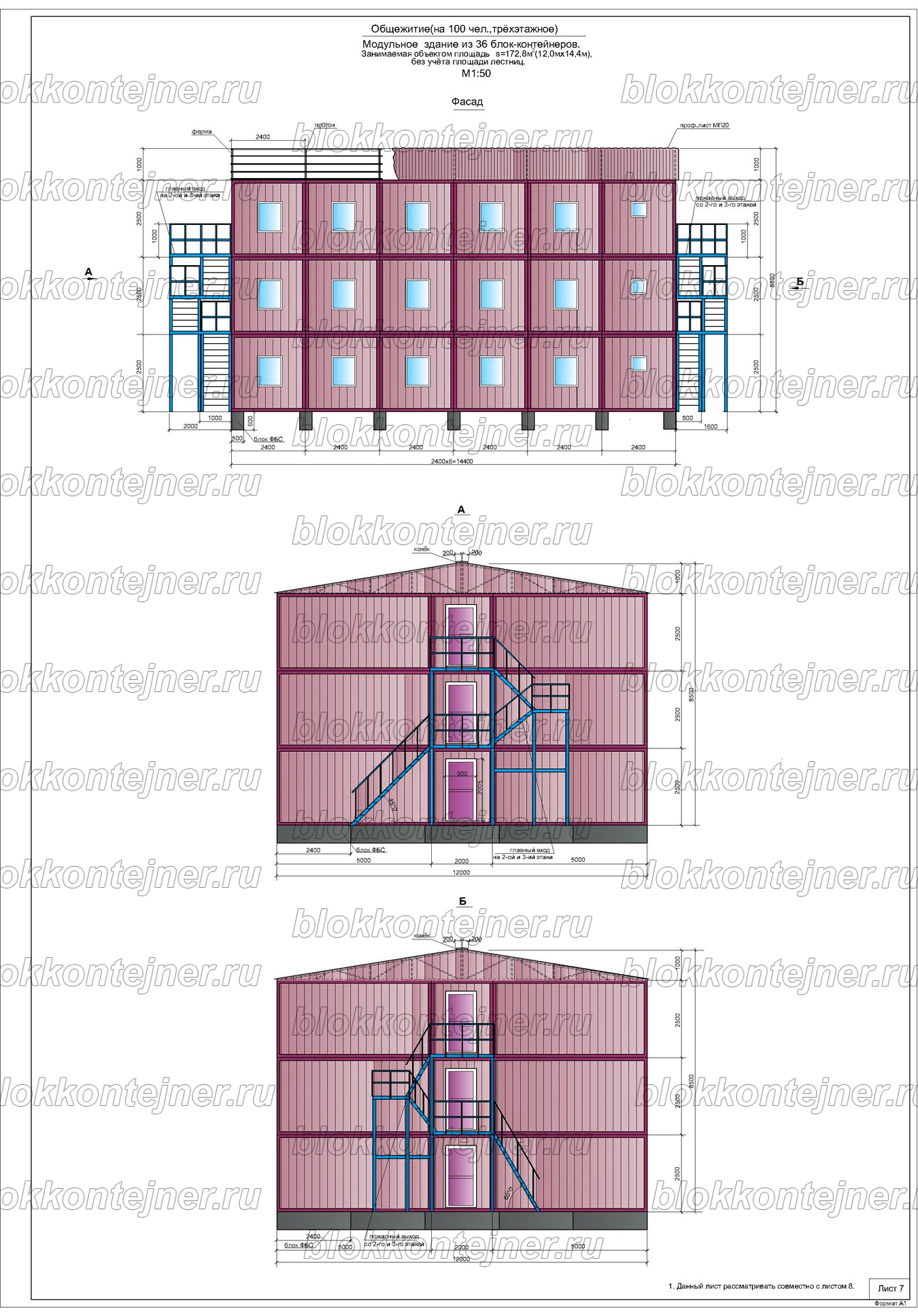 ГлавнаяПроекты готовых решенийМодульные здания → Трехэтажное общежитие из 36 БК на 100 человек