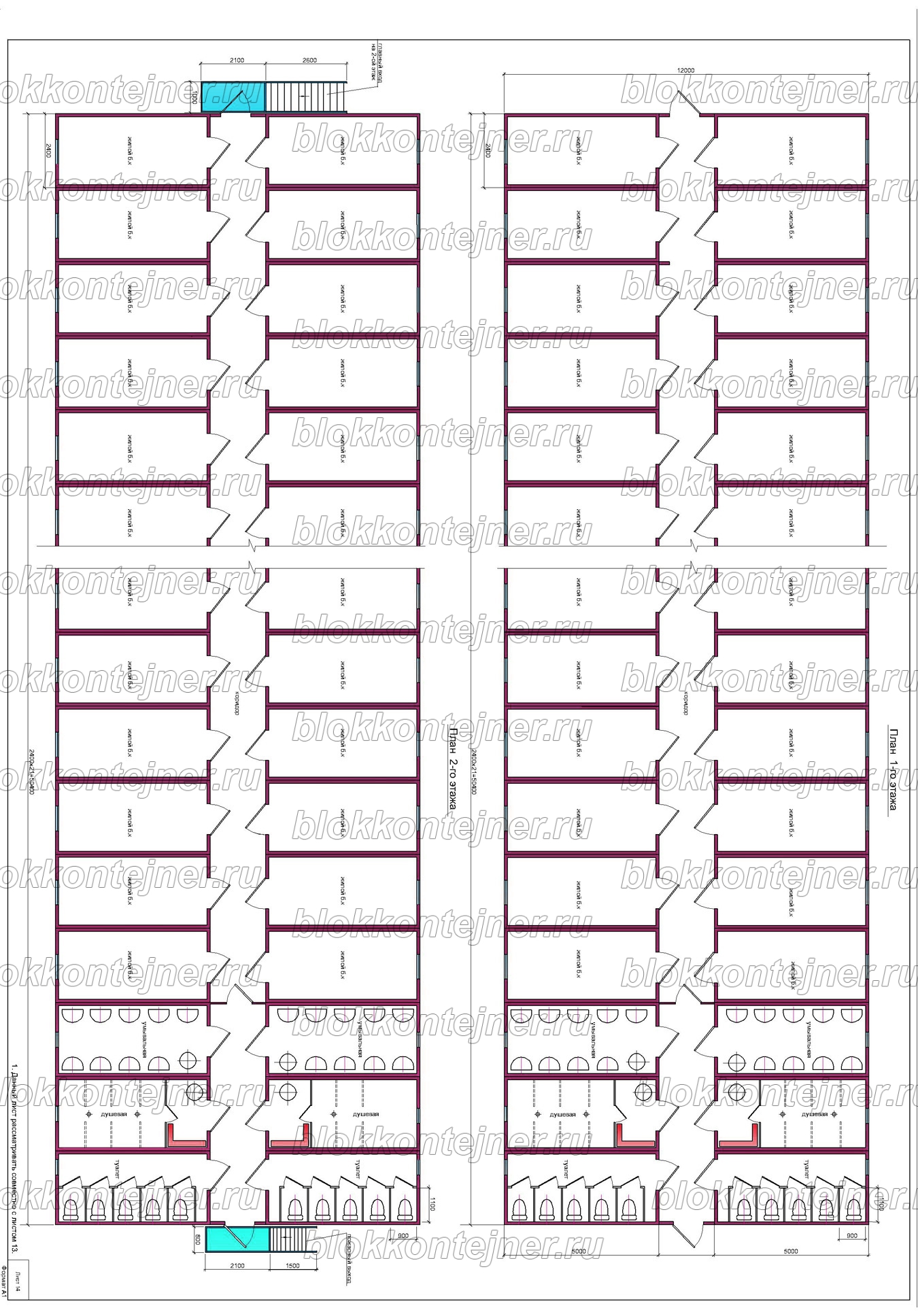 Двухэтажное общежитие на 250 человек из 84 БК